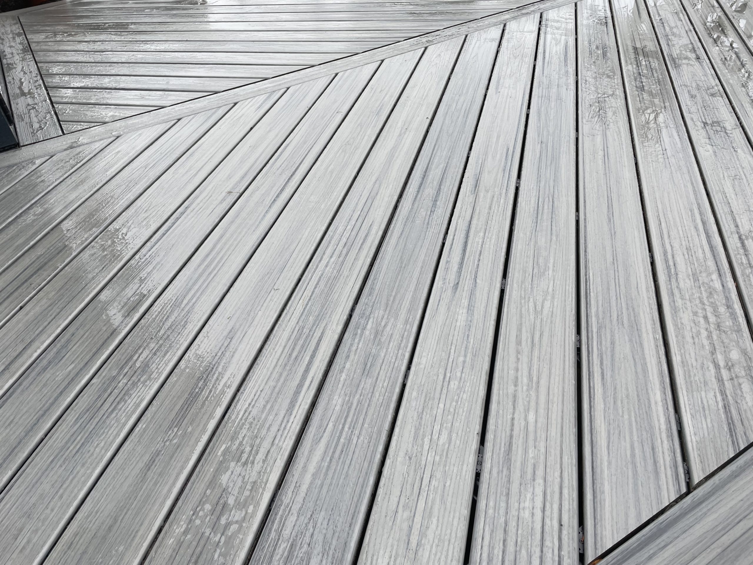 Trex say “A cool medley of calming silver tones, Island Mist mimics the weathered look of driftwood, with its true-to-nature vibrancy and realistic grain pattern.”